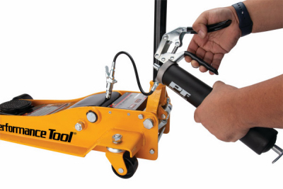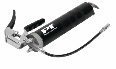 Heavy-duty pistol grip grease gun featuring a vented zinc die cast head and a positive lock pull rod. Compatible with standard 14 oz. cartridges or bulk.