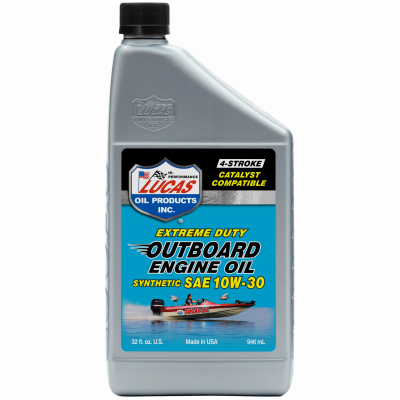 Quart Synthetic SAE 10W-30 Outboard Engine Oil. Lucas synthetic outboard engine oil is specially formulated for the harsh conditions of high-speed watercraft. Designed for 4-stroke applications, Lucas marine oil is catalyst-compatible and will also perform well in inboards and personal watercrafts. Their outboard engine oil is long-lasting and safely blends with synthetic and non-synthetic oils. Plus, it's fortified with a special blend of synthetic additives that coat all moving parts to guard against rust and moisture during long periods of storage. They're excellent for use with supercharged, turbocharged, or nitrous oxide high performance engines. Lubricate your marine engine for performance with Lucas synthetic 4-stroke outboard engine oil.