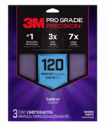 3M Sandblaster, 6 Pack, 120 Grit, 3-2/3" x 9", Sandpaper With No Slip Grip Backing, Backing Is Perfect For Fast Stripping Of Rust, Paint, Varnish & Very Rough Surfaces Using Sharp Minerals & Strong Resins That Cut Fast & Last Long, Lasts 10 Times Longer Than Conventional Sandpaper.
