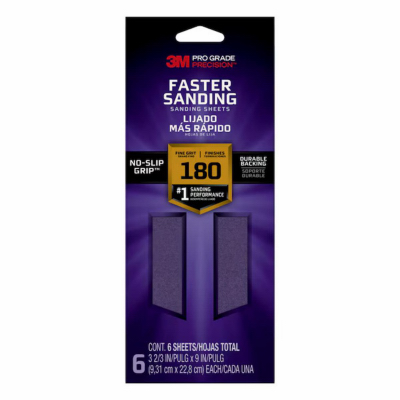 3M Sandblaster, 6 Pack, 180 Grit, 3-2/3" x 9", Sandpaper With No Slip Grip Backing, Backing Is Perfect For Fast Stripping Of Rust, Paint, Varnish & Very Rough Surfaces Using Sharp Minerals & Strong Resins That Cut Fast & Last Long, Lasts 10 Times Longer Than Conventional Sandpaper.
