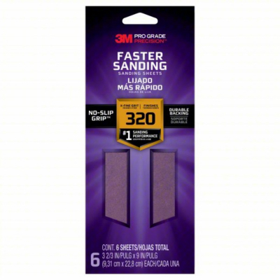3M Sandblaster, 6 Pack, 320 Grit, 3-2/3" x 9", Sandpaper With No Slip Grip Backing, Backing Is Perfect For Fast Stripping Of Rust, Paint, Varnish & Very Rough Surfaces Using Sharp Minerals & Strong Resins That Cut Fast & Last Long, Lasts 10 Times Longer Than Conventional Sandpaper.